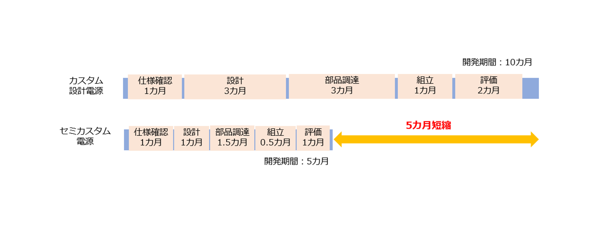 図1. カスタム電源とセミカスタム電源との開発期間の比較