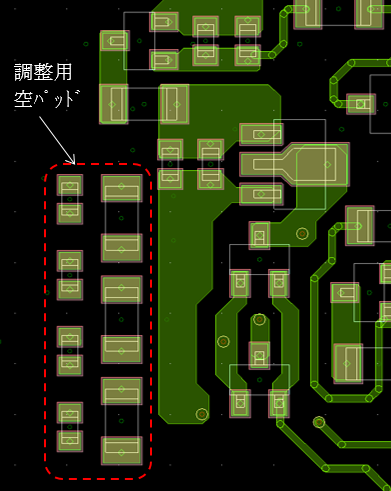 あらかじめ空きパッドを設けておくことで、試作後にもしノイズ問題が発生しても、基板を作り直すことなく、空きパッドにフィルタ部品などを実装するだけで対策ができます。対策を行う必要が無い場合でも、ただの空きパッドとしてそのまま開発を進めることができます。